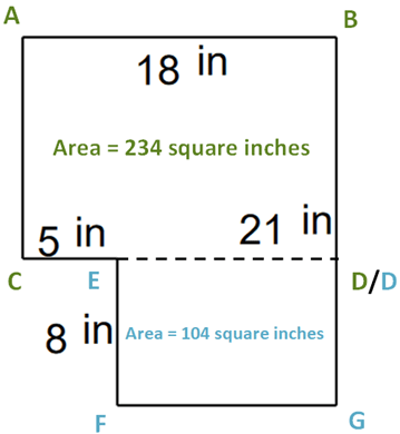 Area EDFG = 8 x 13 = 104 square inches.
