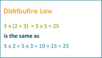 Distributive law shows that adding several numbers and then multiplying the sum by a number is the same as first multiplying each separately by the number and then adding the products.