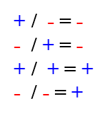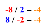Dividing negative and positive numbers follows the same rules as multiplying negative and positive numbers. There are 3 simple rules: