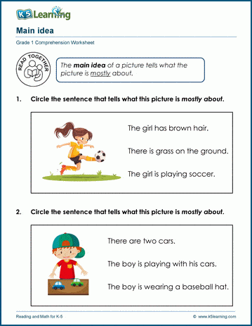 In these worksheets, students identify the main idea of a text or picture that represents a story.