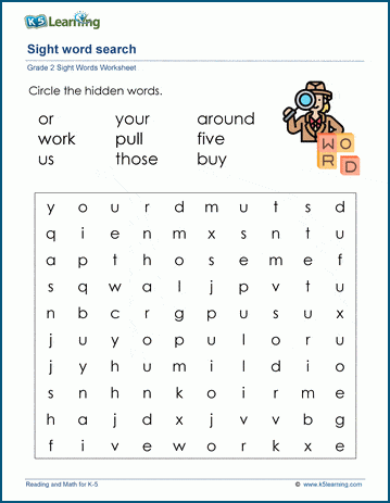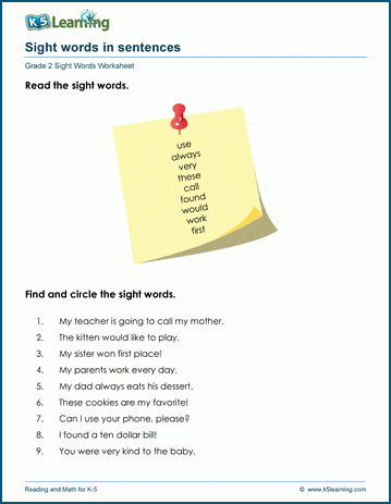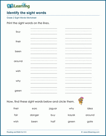 In these worksheets, students find and circle sight words, as well as print grade 2 sight words.