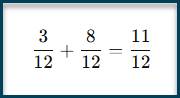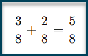 When fractions have the same denominator, simply add the numerators and keep the denominator the same.