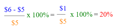 1.2 x 100 = 120% (that is, $6 is 120% of $5)