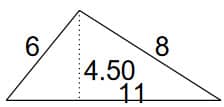 Area = ½ 11 x 4.5 = 24.75. The area is 24.75.
