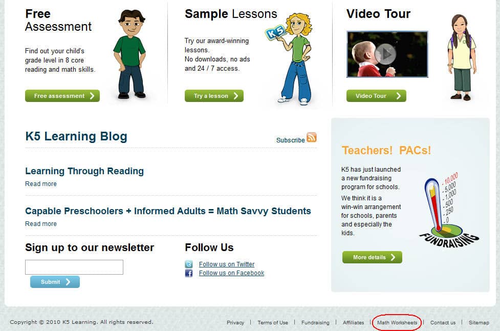 Our worksheets complement our K5 Math program, which develops a deep understanding of math concepts through interactive tutorials and K5 Math Facts, which is an adaptive program for developing instant recall of basic math facts.