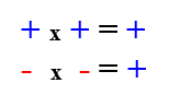 This is the multiplication you have been doing all along, positive numbers times positive numbers equal positive numbers.