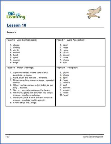 Other exercises covered in the workbook are words and their meanings, synonyms, antonyms, applying meanings, context clues, and selecting the correct word in sentences. You can find the grade 3 vocabulary workbook on this page in our bookstore.