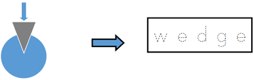 A piece or wood of metal shaped like a triangle with a thin edge is driven or forced between objects to split, lift or make them stronger. This simple machine is called a wedge.