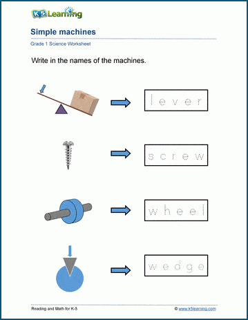 In our grade 1 forces and machines section we have created a few simple machines worksheets for your kids to practice.