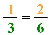 1 out of 3 is equal to 2 out of 6. The ratios are the same, so they are in proportion.