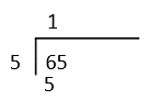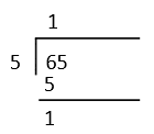 You multiply your answer from step 1 and your divisor: 1 x 5 = 5. You write 5 under the 6.
