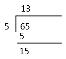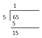 How many times can you divide 5 into 15. The answer is 3. So you put 3 on the quotient line.