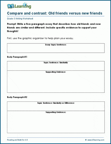 Students write a 5 paragraph essay which compares and contrasts two subjects. A prompt and graphic organizer are provided.