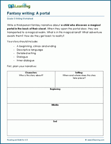 Students are prompted first and third person fantasy narratives; hints and an organizer are provided.