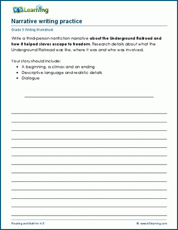 Students write a third-person nonfiction narrative detailing the Underground Railroad's crucial role in aiding slaves seeking freedom.