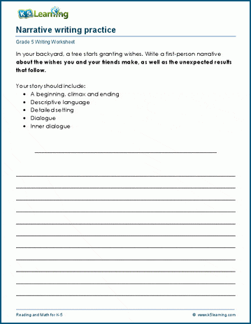Students write a first-person narrative about an event where a tree in their backyard unexpectedly starts granting wishes.