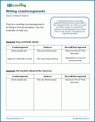 Students are prompted to consider and address counterarguments when they write opinion essays.