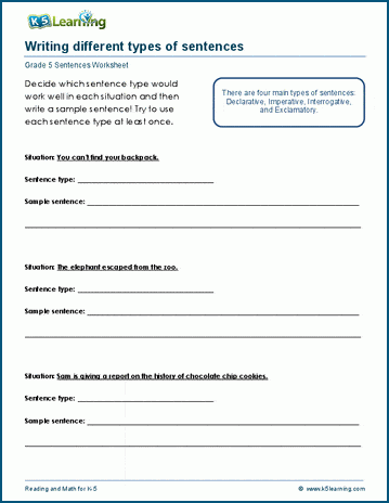 Ideas can be expressed with sentences which are declarative, imperative, interrogative or exclamatory. In these worksheets, students express thoughts using different sentence types.