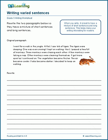 Texts with a mixture of short and long sentences are easier to read. In these writing worksheets, students rewrite paragraphs using a mixture of short and long sentences.