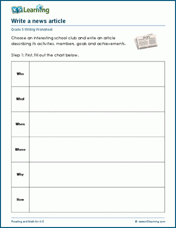 Students write a news article covering the who, what, when, where, why and how of a story. An interview (real or imaginary) is part of the process.