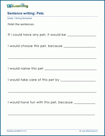This worksheet provides a series of writing prompts related to pets; students complete each sentence.