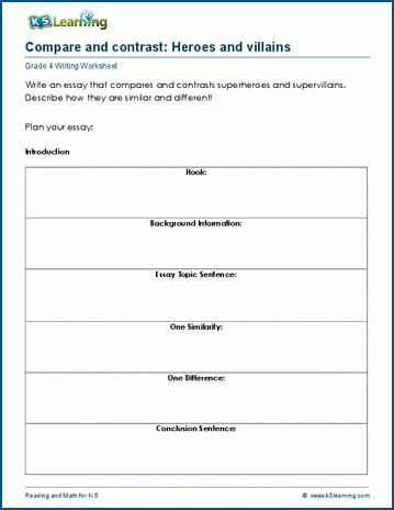Students plan and write essays by comparing and contrasting two items.