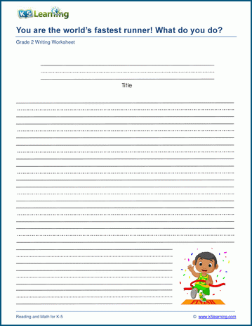 Students are prompted to write a paragraph about being the world's fastest runner.