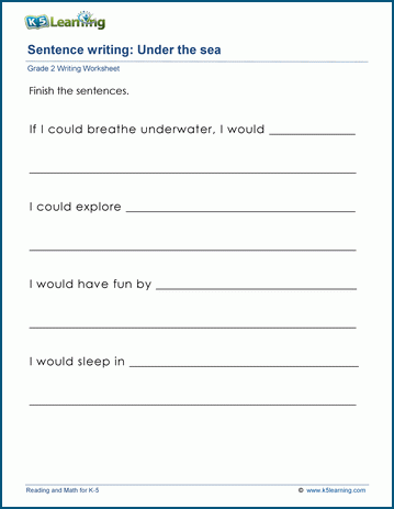 Students are prompted to write a series of sentences about things and creatures under the sea.