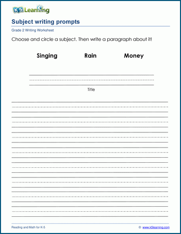 Students are prompted to write about one of the following subjects: Singing, rain or money.