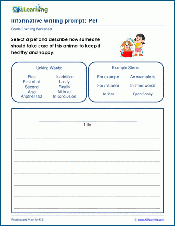 How do you take care of a pet? Students write an informative essay about caring for pets.