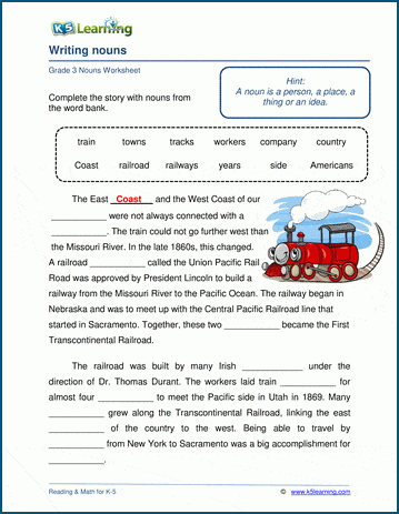 In these exercises, students use nouns from a word bank to complete texts. These worksheets can double as comprehension and vocabulary exercises.