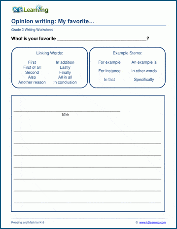 Students are given a generic prompt to write an opinion piece starting with My favorite ....
