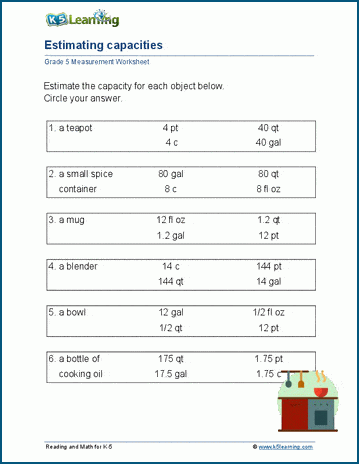 Students select the best estimate of capacity of common containers after considering appropriate units of volume.