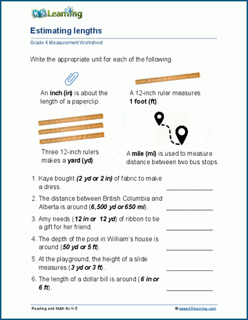 Students are given sentences with "real life" estimated measurements and have to select the measurement units which make the most sense.