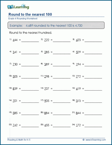 Students round 4-digit numbers (1,000-9,999) to the nearest 100.