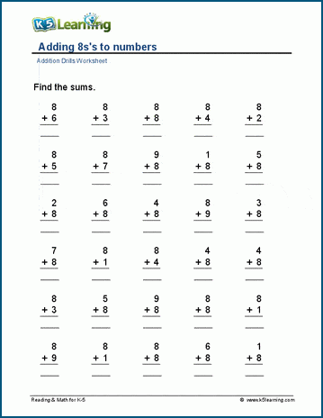 Addition facts with 8's