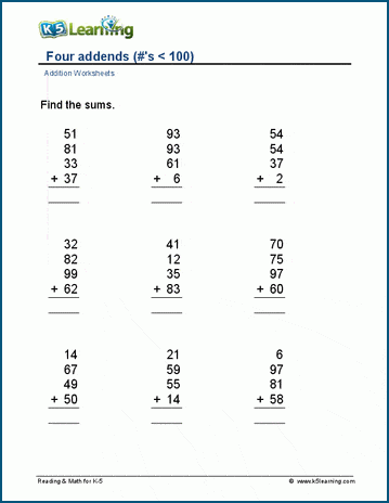 Multiple addends worksheets