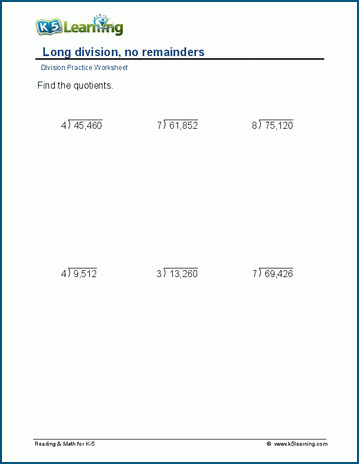 These division drills worksheets provide practice in short and long division, with emphasis on regrouping (borrowing) and remainders.