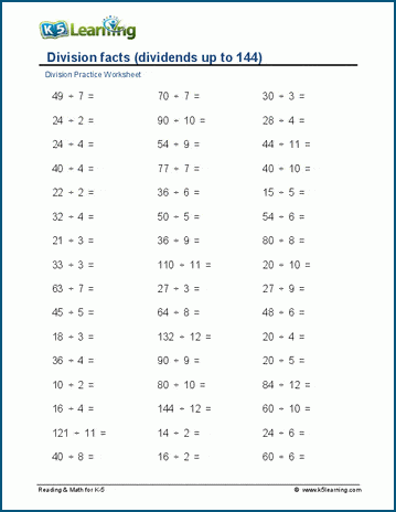 These division facts worksheets provide various exercises to help students build instant recall of their division facts.