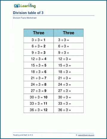 Division table of 3: