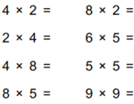 These multiplication facts worksheets provide various exercise to help students gain fluency in the multiplication facts up to 12 x 12.