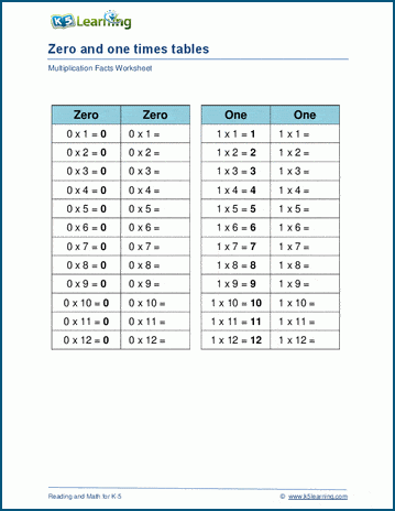 0 & 1 times tables: