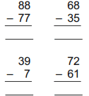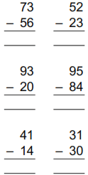 These subtraction worksheets range from simple subtraction of 2-digit numbers without regrouping to subtraction of large numbers in columns with multiple regroupings. Emphasis is on practicing the regrouping algorithm.