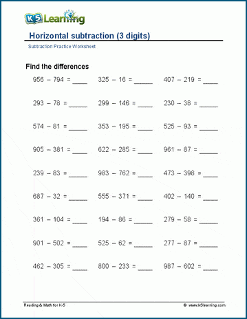 Students are challenged to subtract 3-digit numbers (0-999) in their heads with all equations in horizontal form.