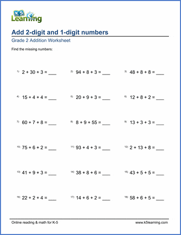 Students find the sum of one 2-digit and two 1-digit numbers. Students should understand that the order of addition doesn't matter (commutative property of addition).
