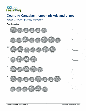 Below are our grade 2 math worksheets on counting Canadian nickels and dimes. Learning to add Canadian money is an important life skill for Canadians.