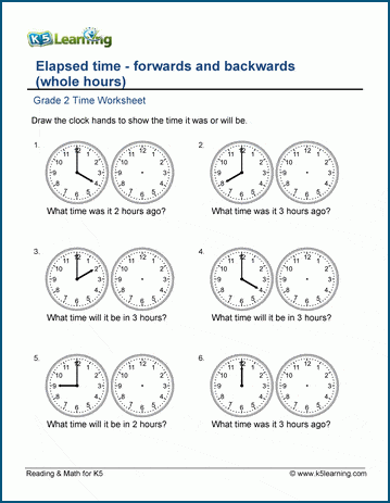Students are given a clock and asked what time it will be after a certain number of hours or what time it was a certain number of hours ago. All changes in time are in whole hours.