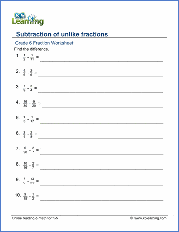 Students find the difference between two proper fractions with different denominators. Great practice on finding a common denominator!