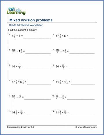 In these worksheets, students practice division involving whole numbers, fractions and mixed numbers.