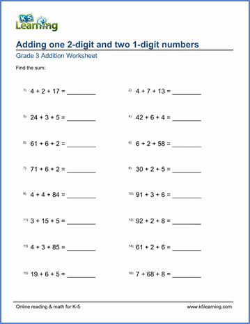 Find all of our addition worksheets, from adding by counting objects to addition of multiple large numbers in columns.